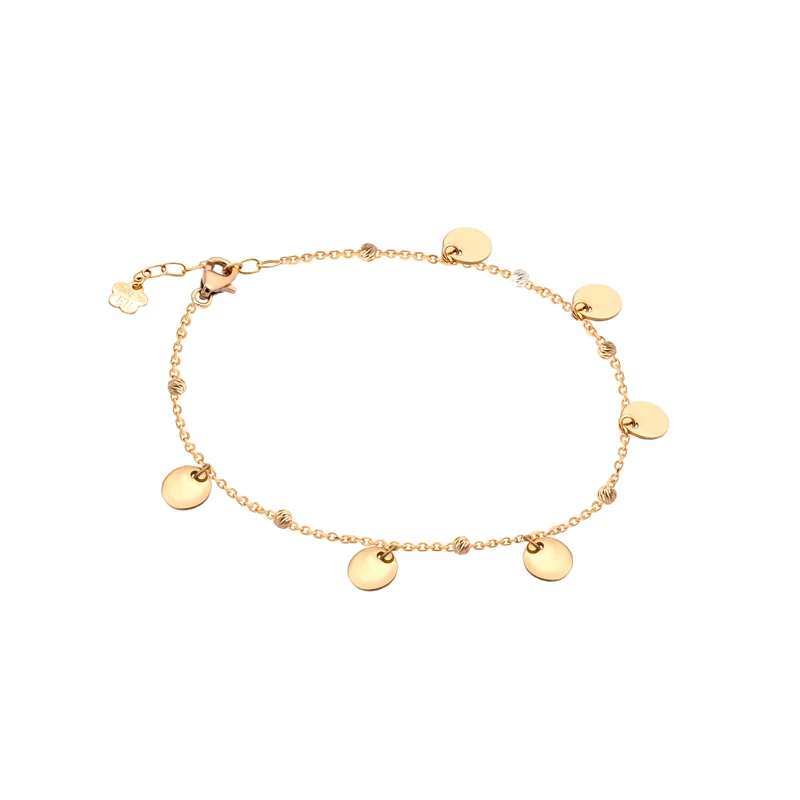 دستبند زنجیری طلا 18 عیار زنانه الی گالری مدل تمام گوی البرناردو و سکه